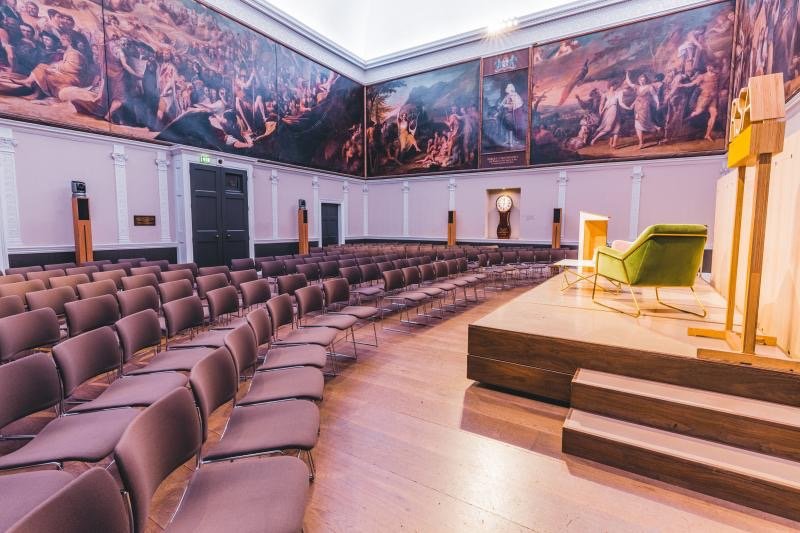 “The project which really brought Recursive Digital into being, was the building-wide technology design for the Royal Society of Arts (RSA) in 2012 on John Adams Street in London. The aim of the project was to neatly fit 21st-century technology into an 18th-century building with a core focus on forward-facing tech which would best communicate the ideas and aims of the organisation. We worked across all of their public-facing spaces, such as the Great Room and the Benjamin Franklin room below, however they also wanted something forward-thinking in the main foyer of the building, which is an ornate vestibule.
